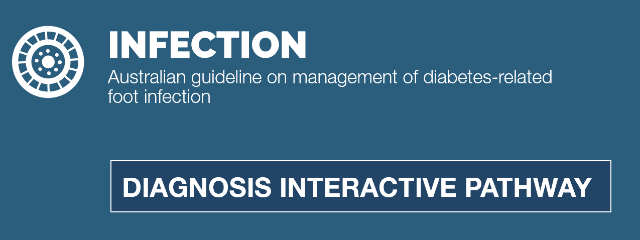This interactive pathway has been designed to provide information to assist decision-making and is based on the best evidence available at the time of development. It is intended for use by health professionals as a general guide to appropriate practice, and to be followed subject to the health professional's judgement and the patient’s preference in each individual case. It should be used in conjunction with the other guidelines from the 2021 Australian guideline for diabetes-related foot disease.