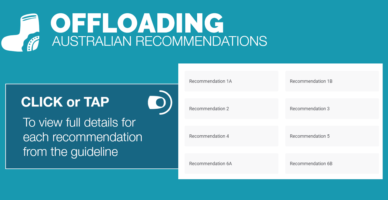 In a person with diabetes and a neuropathic plantar forefoot or midfoot ulcer, use a non-removable knee-high offloading device rather than a removable offloading device to promote healing of the ulcer (GRADE strength of recommendation: Strong; Quality of evidence: Moderate) | |